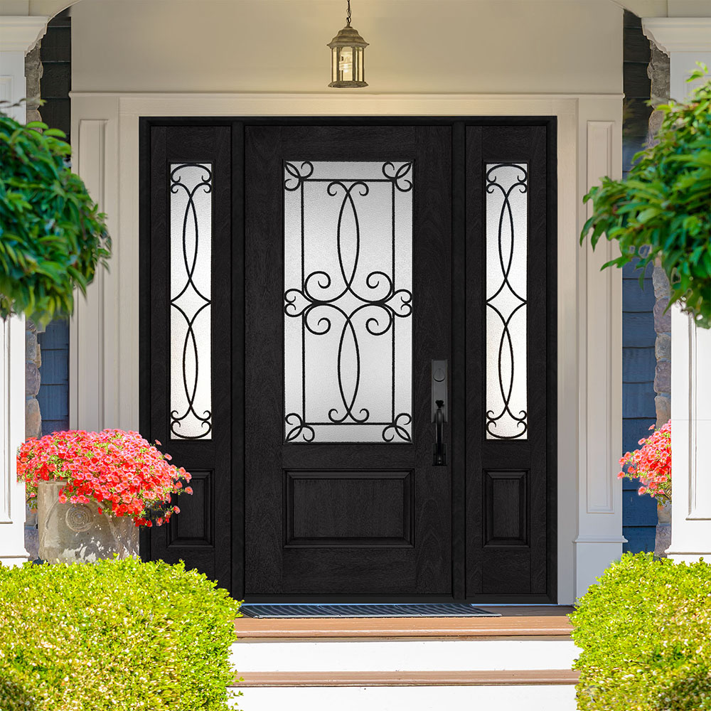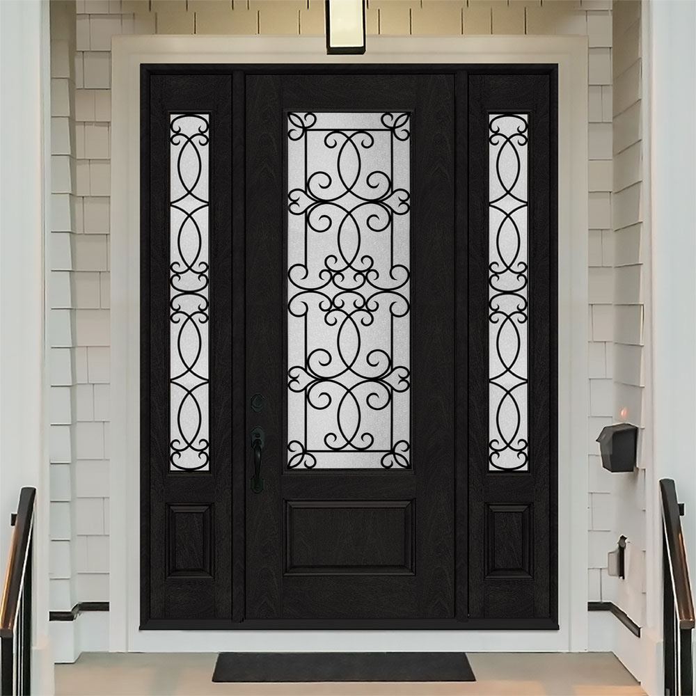 Add elegance and durability to your entryway with the Regency pre-finished fiberglass door. It features direct glazed decorative glass. Engineered with a 3″ solid LVL door edge and polyurethane core, this fiberglass unit simulates the resonance of real wood. It is a rot-free door, protecting it against the effects of the elements.