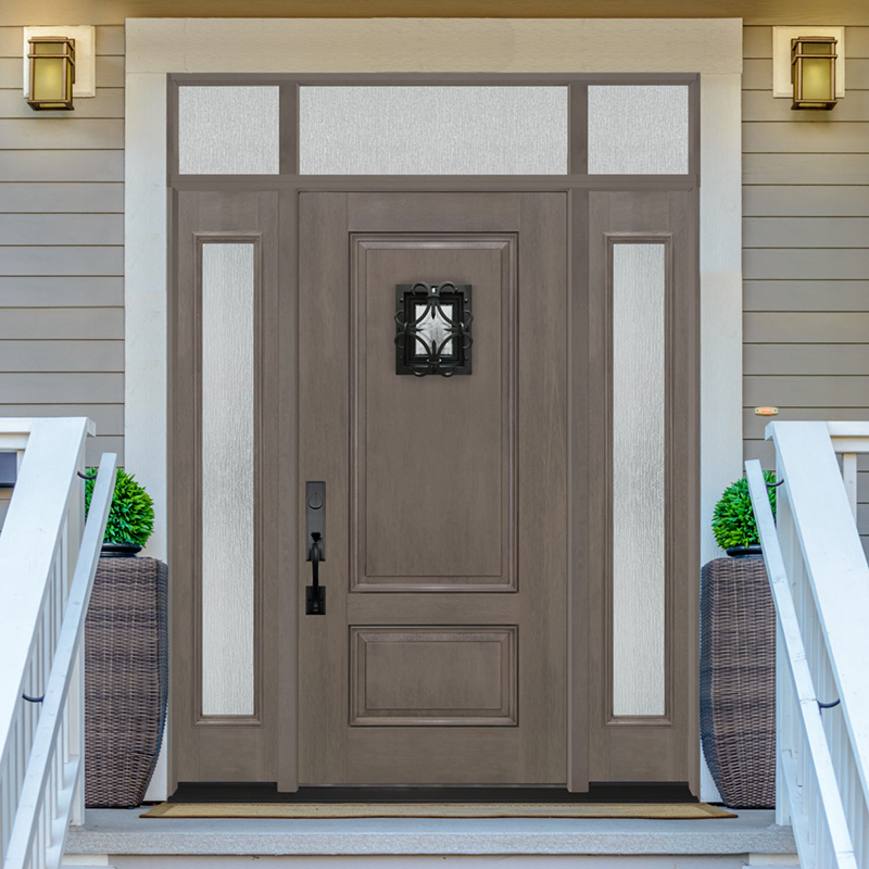 Add elegance and durability to your entryway with the Regency pre-finished fiberglass door. Engineered with a 3″ solid LVL door edge and polyurethane core, this fiberglass unit simulates the resonance of real wood. It is a rot-free door, protecting it against the effects of the elements.