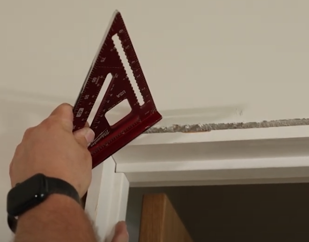Using your square, check the jamb is flush with the rough opening. Don’t skip this step!